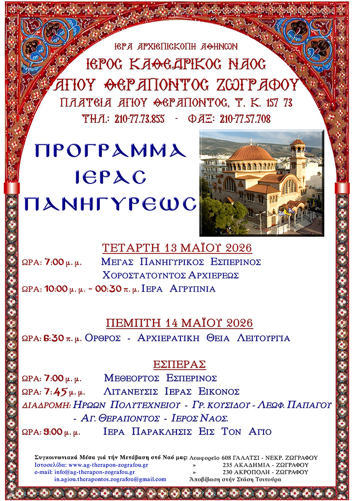 7:00 μ. μ. ΜΕΓΑΣ ΠΑΝΗΓΥΡΙΚΟΣ ΕΣΠΕΡΙΝΟΣ